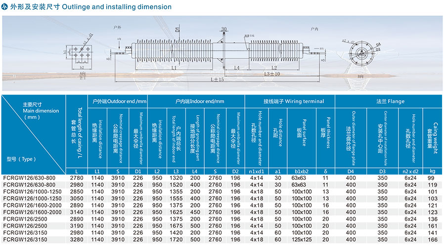 FCRGW-126KV復(fù)合干式電容型穿墻套管